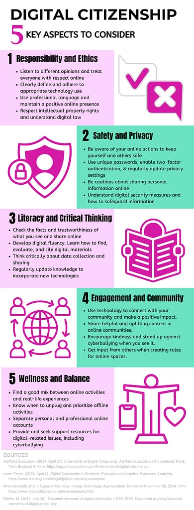 As part of a class I’m taking for my Masters in Education Administration (Educational Technology), I had to create an infographic about Digital Citizenship. I felt this piece was important to share with others on my blog. We know most of this, but a thoughtful reminder is always helpful.